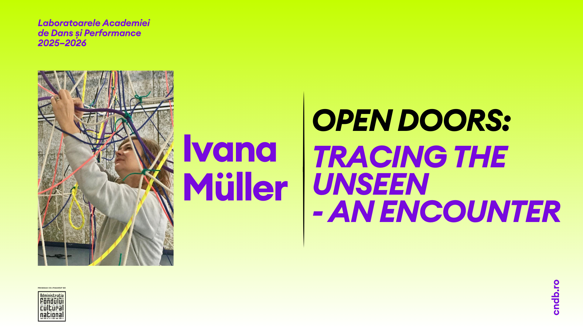 The Academy of Dance and Performance Laboratories is a program organized by the National Center for Dance Bucharest (CNDB), now in its third edition. The current edition takes the form of laboratories, through a consistent program of practices that focus on the body, the production of knowledge, and contemporary creation. The Dance and Performance Academy Laboratories aim to intensively train artists who can generate and realize their own ideas and understandings of dance as an art form and propose new artistic contributions and perspectives. The Academy thus offers the opportunity to explore techniques, methods, and directions of creation related to relevant artistic themes or acute issues of the contemporary world.