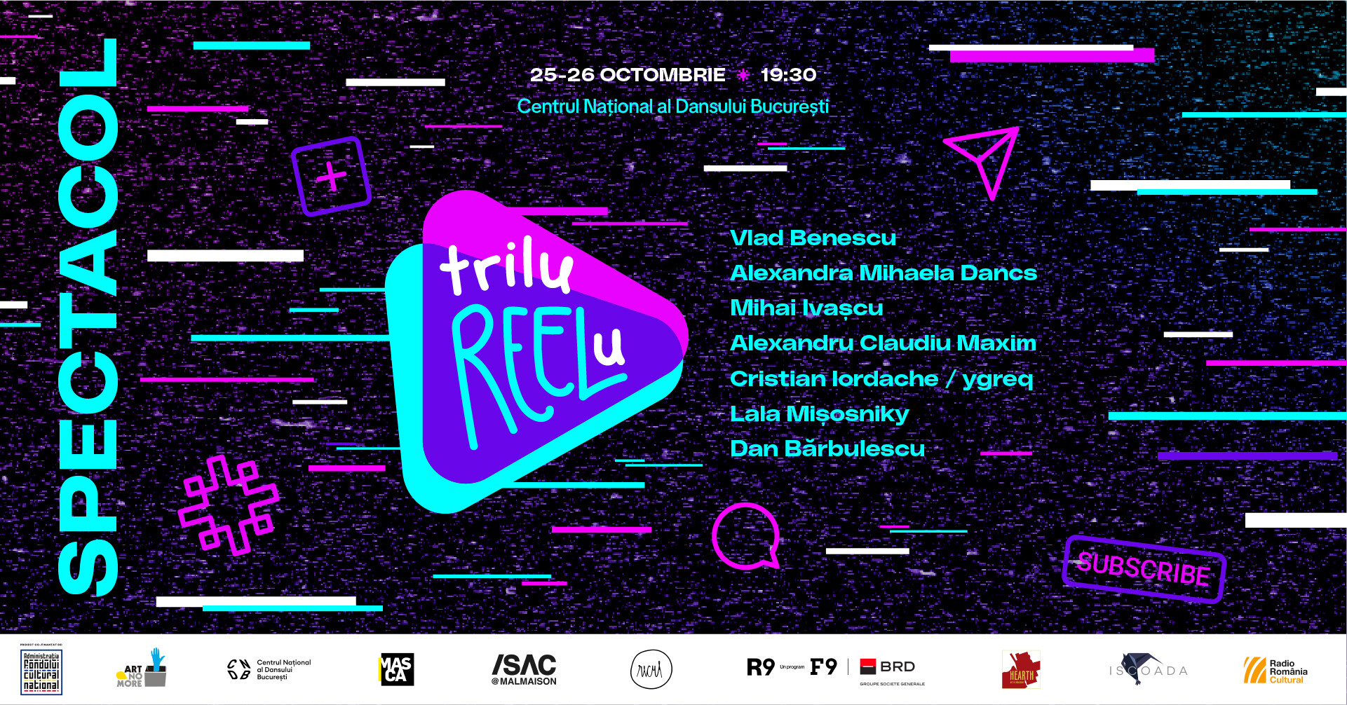 triluREELu e plonjeul a doi performeri într-un telefon blocat pe reels din cele mai diverse, de la dansuri virale la discursuri motivaționale. Pe măsură ce aceștia „înoată” în imensitatea virtuală, spectacolul devine absurd de comic și de complex tehnologic: feed-ul e pe scenă, scenografia digitală și corpurile interacționează în reel-uri hibride 3D, captions și muzici aglomerate devin limbaj, vanitatea și ritmul cresc nebunește.